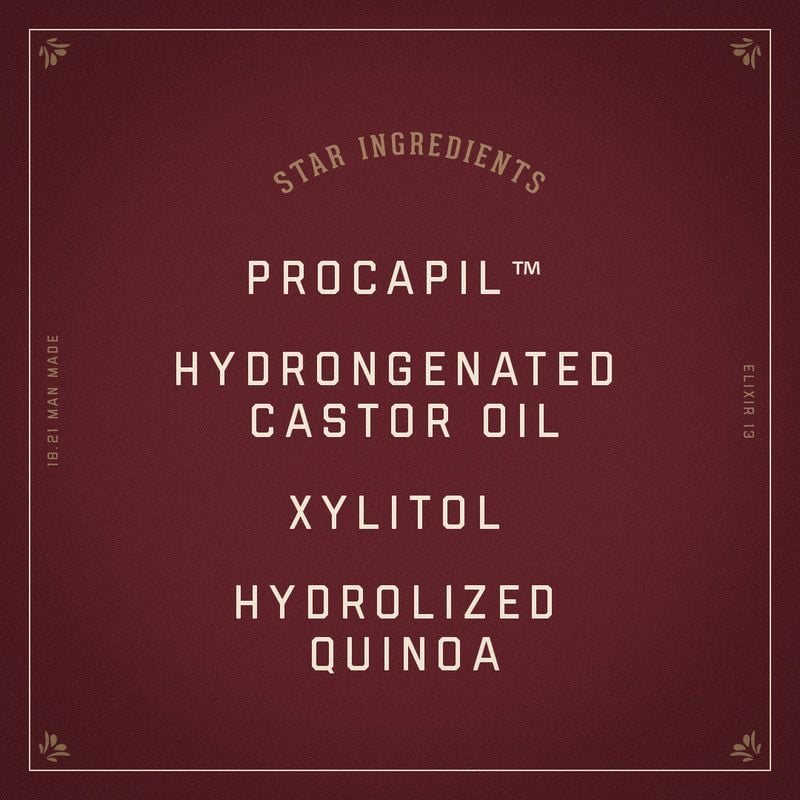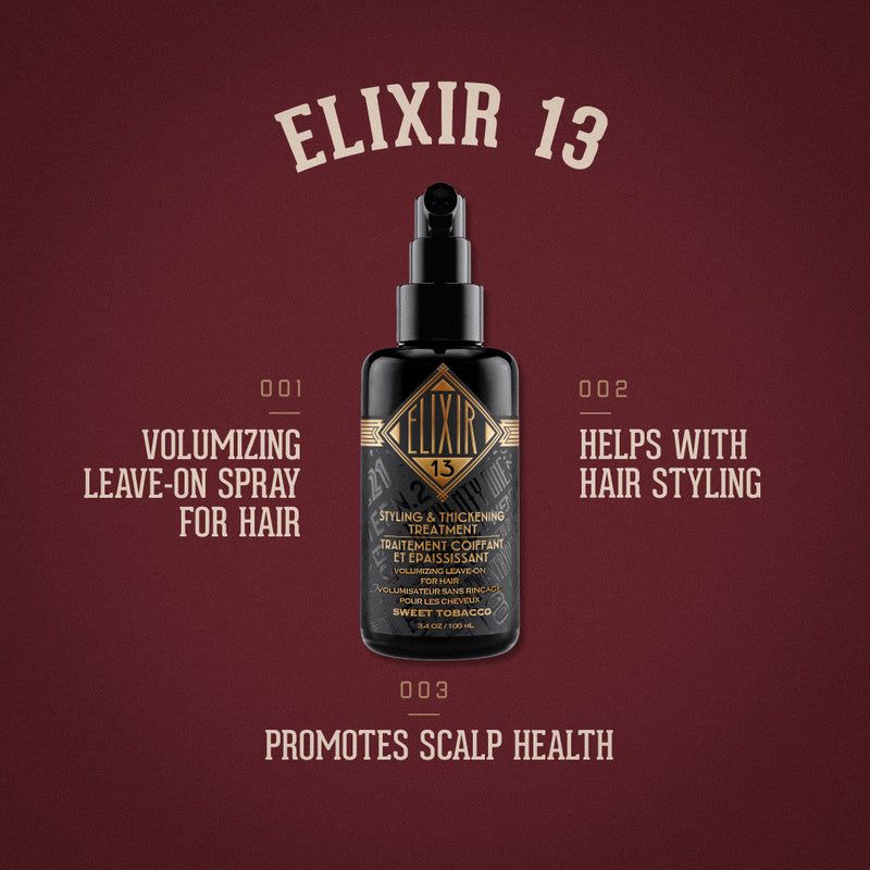 Sweet Tobacco Elixir 13 là sản phẩm dưỡng tóc chuyên sâu đầu tiên có công dụng tạo kiểu. Sản phẩm hỗ trợ tình trạng rụng tóc với thành phần Procapil ™. Thành phần này đặc trị nguyên nhân gây rụng tóc bằng cách tăng chuyển đổi chất ở da đầu, giảm oxy hoá và ngăn nang tóc thu nhỏ do DHT.