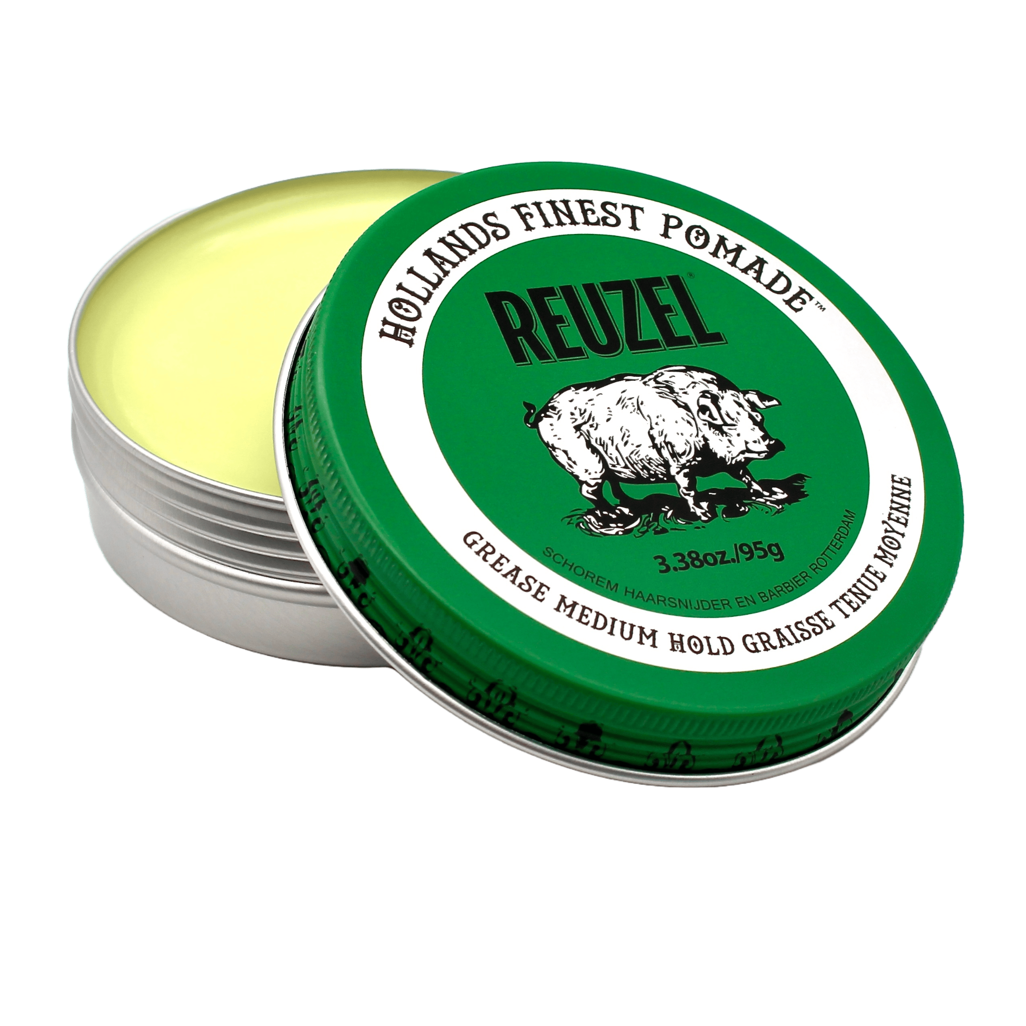 Reuzel Green là một dòng pomade nền petrolatum với độ giữ nếp vừa phải và khả năng linh hoạt cao. Reuzel được đựng trong hộp thiếc mỏng, được thiết kế trông giống như một vật dụng trang trí cổ điển bắt mắt. Hình ảnh con lợn gợi ý về nguồn gốc của Pomade từ thế kỷ 17 và 18, nơi chất béo từ lợn được sử dụng làm pomade. Reuzel có nghĩa là "mỡ lợn" trong tiếng Hà Lan.